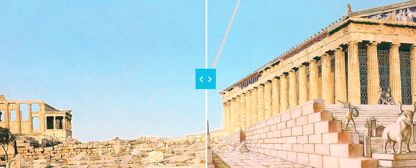 03 de 10- El Promontorio – Ahora y antes < /i>»,»nextArrow»:»< /i>»,»fade»:true}’> Saliendo de los Propileos, en el mismo ángulo y en el punto más