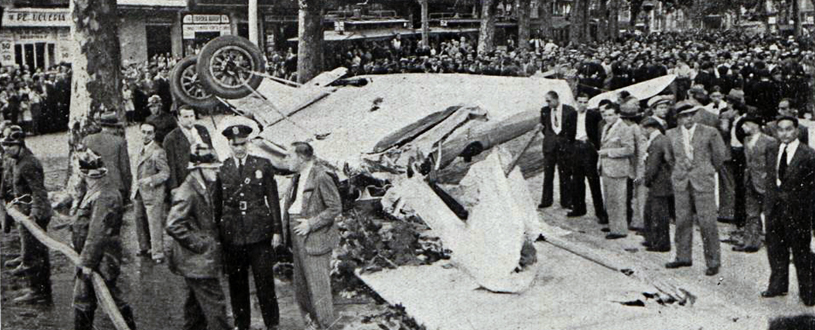 4 noticias de época sobre «El avión que se estrelló en las Ramblas de Barcelona». El 29 de septiembre de 1934 sobre las 4 de la tarde un avión «Breguet 12-97» con dos tripulantes caía sobre las Ramblas de Barcelona.