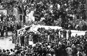En el entierro del teniente aviador Dalias, un avión cae sobre un árbol de la rambla de Santa Mónica