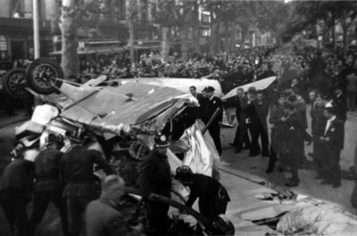 El avión que se estrelló en las Ramblas de Barcelona