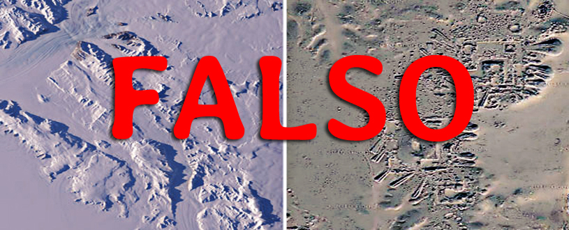 La parte izquierda es de hecho una imagen de la Antártida, pero fue hecha por el Landsat 8. La segunda imagen no es ni siquiera del mismo continente: es una imagen de Google MAPS de Saqqara en Egipto , que muestra una pirámide enterrada.