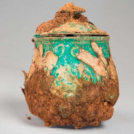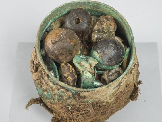 Los objetos fueron encontrados dentro de una olla desenterrada en Galloway e incluyen objetos raros, como un broche de plata de Irlanda y seda de la última moda en Estambul, así como objetos de oro y cristal.