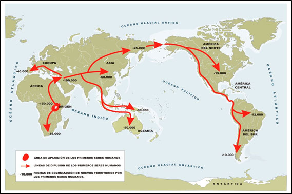 Empezando entonces por la certeza del origen africano del hombre ―algo a día de hoy no cuestionado por ninguna aportación científica reciente―, podemos afirmar que las Migraciones, precisamente las migraciones, fueron el primer comportamiento colectivo y el más importante para el desarrollo de los homínidos que llegaron así a habitar todo el planeta. Porque hubo más de una. Hubo más de una migración y hubo más de una especie humana cohabitando a la vez. Hoy, se estima que pudieron ser hasta cuatro los homínidos que llegaron a convivir en algún momento en el tiempo y/o en el espacio, siendo solamente uno de ellos el que les sobrevivió a todos, el Hombre Moderno (Homo sapiens sapiens).