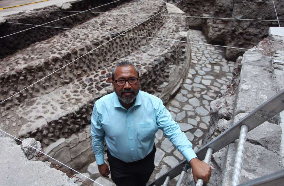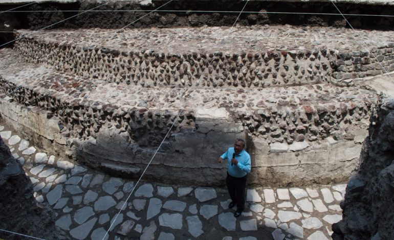 “También se descubrió una plataforma de nueve metros de ancho, delimitada por el cabezal poniente de la cancha del juego de pelota”, señaló el arqueólogo mexicano Eduardo Matos Moctezuma.