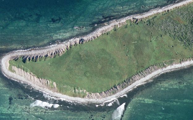 Daba a dos bahías, ofreciendo protección a los buques de cualquier dirección del viento. Parcak vio rarezas en el suelo donde destacó unos patrones y unas decoloraciones que sugerían estructuras artificiales hechos por el hombre, posiblemente de casas comunales de Vikingos.