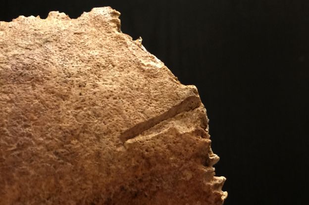 Estaba destrozado por un fuerte golpe, la hoja de la espada dejó un surco profundo que hace que la causa de la muerte clara. ¿Quiénes eran estos hombres que sacrificaban a sacerdotes y aniquilaron uno de los lugares cristianos más antiguos de Gran Bretaña? Es casi seguro que eran hombres que no les preoccuba en absoluto el Dios de los cristianos, hombres que vinieron en barcos desde el norte y el oeste, hombres que buscaban riquezas: los Vikingos.