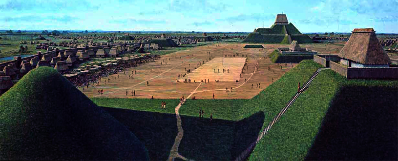 Cahokia, en el sur de Illinois, la mayor comunidad prehistórica de lo que hoy es Estados Unidos, era una ciudad india y un complejo ritual del Mississippi, ocupado entre el 700 y 1400 d.C. En su momento culminante, abarcaba una superficie de 15,5 km2, con una población de 20.000 personas. El yacimiento cubre unos 9 km2 con un total de 68 túmulos, que incluyen la mayor de estas obras, el Túmulo de los Monjes.