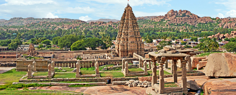 Vijayanagara (La ciudad de la Victoria) fue fundada en el siglo XIV y fue la capital del Imperio que lleva el mismo nombre. En un decreto del año 1346 la ciudad es nombrada como Vidyanagara (La ciudad de la Sabiduría). Situada a unos 320 km al suroeste de Hyderabad, fue una de las ciudades más grandes de su época con una duración entre el 1336 y el 1646 d.C., fue fundada por Harihara I[ref]Harihara I, 1336-1356 d.C, llamado Hakka ಹಕ್ಕ y Vira Harihara I, es el fundador del imperio Vijayanagara. Fue el primer hijo de Bhavana Sangama del clan kuruba y fundador de la dinastía Sangama, la primera y más duradera de las cuatro dinastías que gobernaron en Vijayanagara.[/ref] y su hermano Bukka Raya I[ref]Bukka ಬುಕ್ಕ್ (1356-1377), también llamado Bukka Raya I, fue el segundo rajá (Emperador) de la dinastía Sangama, que gobernó el imperio Vijayanagara, en el sur de la India, entre los siglos XIV y XVII.[/ref].