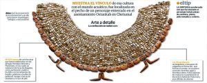 Un collar Maya que buscaba emular la piel de un pez al moverse, la cual está conformado por 1.620 lentejuelas de concha nácar y 34